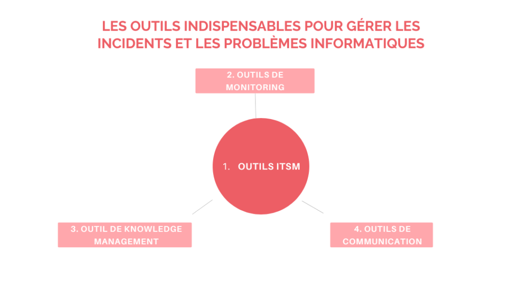 La gestion des incidents/problèmes s’appuie sur un outil ITSM. Cependant, pour une vision à 360 degrés du processus, notons que ces plateformes s’intègrent avec des outils de monitoring, de communication et de knowledge management.