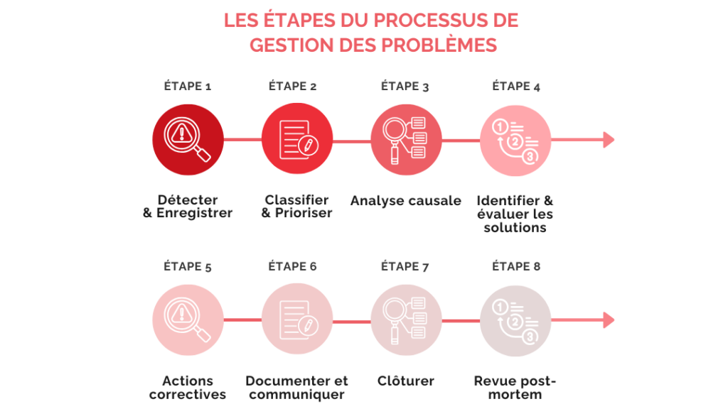 Pour la gestion d’un problème, nous pouvons retenir 8 étapes :